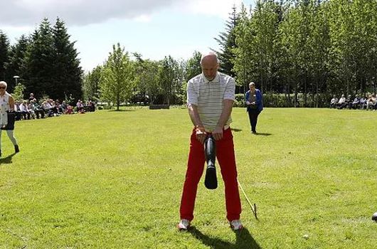 „Hér er mjög gott og skemmtilegt að vera. Það rigndi reyndar örlítið nú í morgun. En veðrið er að lagast, það verður sól og hlýja á morgun,“ segir Flemming Jessen, sérgreinarstjóri í boccía og einn skipuleggjenda Landsmóts UMFÍ 50+.