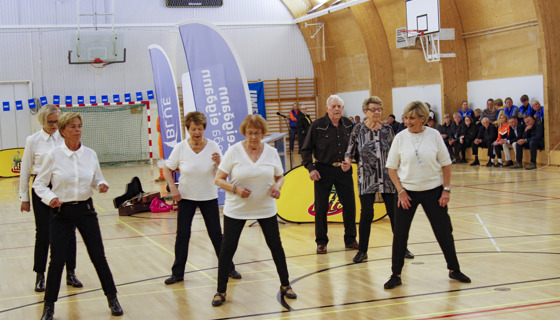 Gunnar Jónsson, þátttakandi í línudansi á Landsmóti UMFÍ 50+ er sönnun þess að hreyfing bætir árum við lífið og gleði við árin. Gunnar sýndi listir sínar með línudanshópi við setningu Landsmóts UMFÍ sem fram fór í kvöld.