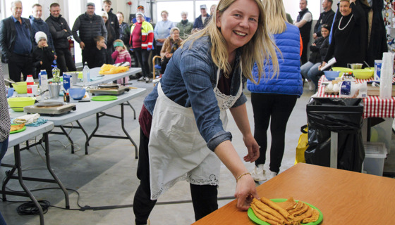 Af þeim sökum tóku nokkrir keppendur sig til og smelltu í nokkrar ferskar pönnukökur sem lögð voru á borð fyrir áhorfendur. Þegar dómnefnd kvað svo upp úrskurð sinn reyndist Eygló Alexandersdóttir pönnukökumeistari mótsins. Eygló er góðkunningi Landsmóts UMFÍ 50+. Hún hefur tekið þátt í því um áraraðir og keppt í mörgum greinum, þar á meðal í pönnukökubakstri.