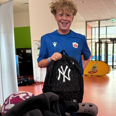 Anton kom við í þjónustumiðstöð Unglingalandsmótsins í Egilsstaðaskóla og fann þar töskuna sína sem hann hafði gleymt og í henni allir þeir munir sem í henni voru.