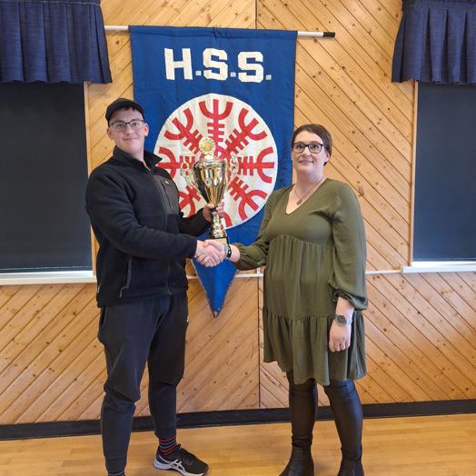 „Hann hefur fengið allar viðurkenningar sem hægt er að fá, Gullmerki ÍSÍ og UMFÍ og því vafðist þetta fyrir okkur. Við vildum gefa honum eitthvað sérstakt,“ segir hún. Lendingin varð að gefa honum einkar fallegan glerskjöld með Ægishjálminum, sem er merki HSS.