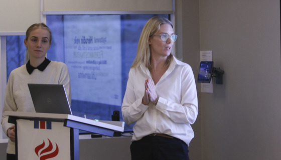 Hér að neðan má sjá tvær myndir af Erlu. Önnur þeirra sýnir hana með Jóhönnu Írisi Ingólfsdóttur, hinum svæðisfulltrúa íþróttahéraðanna á Austurland, þegar þær kynntu greiningarvinnu sína fyrir stjórnum UMFÍ og ÍSÍ á dögunum. Hin myndin er frá árinu 2017 þegar Unglingalandsmót UMFÍ var haldið á Egilsstöðum. Erla var þá sumarstarfsmaður UÍA og verkefnastjóri á mótinu.