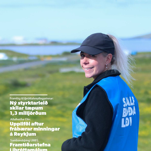 Á forsíðu blaðsins að þessu sinni má sjá Söndru Finnsdóttur en hún var sjálfboðaliði á Landsmóti UMFÍ 50+ í Fjallabyggð í fyrrasumar.