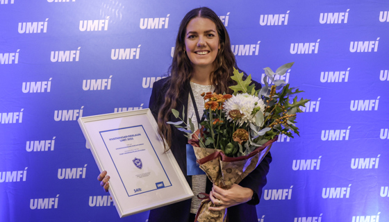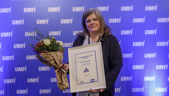 Gunnhildur Gunnarsdóttir tók við Hvatningarverðlaununum fyrir hönd Ungmennasambands Borgarfjarðar (UMSB) í fjarveru Guðrúnar Hildar Þórðardóttur, sambandsstjóra UMSB.