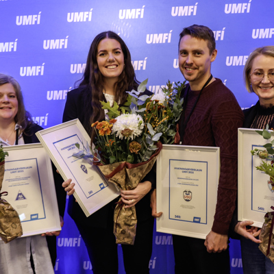 Fjögur íþrótta- og ungmennafélög hlutu Hvatningarverðlaun UMFÍ á Sambandsþingi UMFÍ sem nú stendur yfir. Þetta eru Ungmennafélagið Vísir í Suðursveit, Ungmennafélag Reykdæla, Íþróttafélagið Undri í Dalabyggð og heilbrigðisteymi Skautafélags Akureyrar.