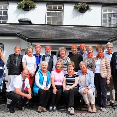 „Við karlarnir fáum að slást í hópinn þegar meira stendur til eins og t.d. göngu- og menningarferðir á erlendri grundu,“ segir hann. Svo skemmtilega vill til að nemendur við Hvassaleitisskóla settu einmitt Hreyfiviku UMFÍ vorið 2016. Gönguhópurinn hreyfir sig jafnt innanlands sem utan. Vikulega er gengið um nærumhverfi Hvassaleitisskóla. Annað hvert ár er svo farið í lengri göngur og menningarferðir á Íslandi en hitt árið erlendis. Í Hreyfiviku UMFÍ, í júní sl., var hópurinn á átta daga ferðalagi um Írland með íslenskum fararstjóra og buff merkt Hreyfivikunni á höfði.