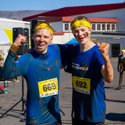 „Þetta var geggjað gaman!“ hrópaði Íris María upp yfir sig þegar hún kom úr Drulluhlaupi Krónunnar og UMFÍ sem fram fór í brakandi blíðu við íþróttamiðstöðina við Varmá í Mosfellsbæ í dag. Hún og faðir hennar var á meðal 800 þátttakenda í hlaupinu sem stóð frá klukkan 10 í morgun til klukkan 14.