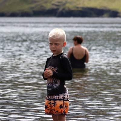Allt er í boði á Landsmóti UMFÍ 50+ í Neskaupstað. Keppnisstjórinn Þorbjörg Ólöf Jónsdóttir bauð þátttakendum mótsins í dag að skella sér í sjósund við kajakfjöruna við Þórsskúr um eittleytið í dag. Nokkrir þátttakendur þáðu boðið.