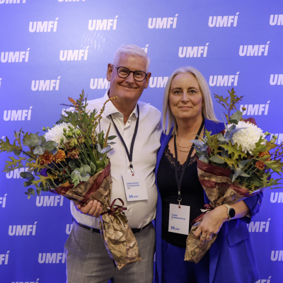 Þau Klara Bjarnadóttir, formaður Ungmennafélags Grindavíkur, og Ómar Bragi Stefánsson voru sæmd Gullmerki UMFÍ á Sambandsþingi UMFÍ í gær. Ómar Bragi hlýtur Gullmerkið fyrir sjálfboðaliðastarf sitt fyrir knattspyrnudeild Tindastóls á Sauðárkróki.