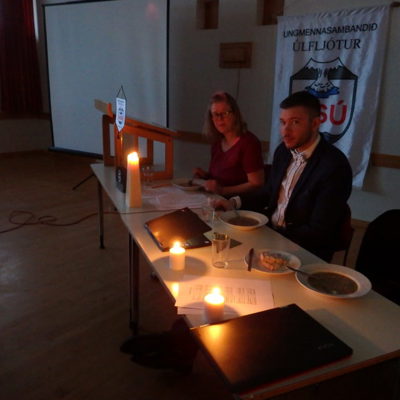 „Við stefndum að pappírslausu þingi. En ég hafði illan bifur og prentaði því út tillögurnar og annað efni. Þetta hefði auðvitað sloppið því rafmagnið fór af þegar við snæddum kjötsúpuna um kvöldið og kveiktum þá á kertaljósum. Rafmagnið komst svo á aftur eftir mat,“ segir Sigurður Óskar.