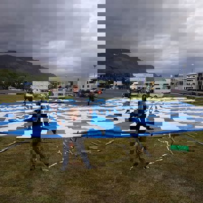 Landsmótstjaldið komið upp á Sauðárkróki