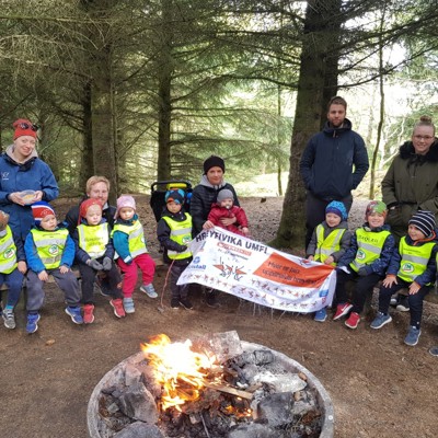 „Við förum alltaf í göngutúr á hverjum degi með börnin í Hreyfiviku UMFÍ. Við förum í leiki, poppum yfir eldi og skoðum hestana. Við bjóðum foreldrum að koma með og afi hefur líka þekkst boðið,“ segir Bergrún Stefánsdóttir, íþróttafræðingur og fagstjóri hreyfingar í Heilsuleikskólanum Kór í Kópavogi. Yngri og eldri deildir í skólanum fara í nokkurra kílómetra göngutúra á hverjum degi í Hreyfivikunni og njóta þess að vera úti. Farið er út tvisvar á dag um tvo tíma í senn og eru á milli 10-15 börn í hverjum hópi auk starfsfólks.