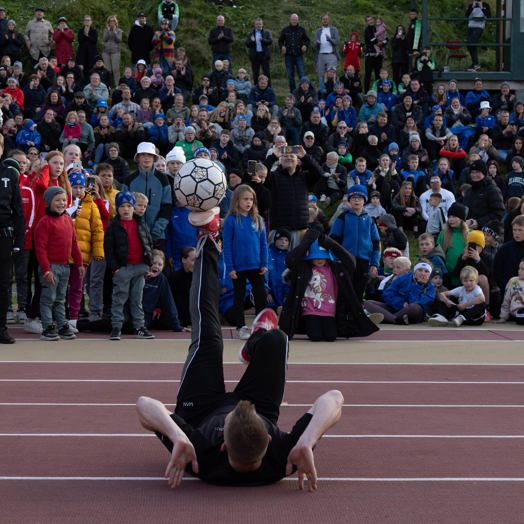 Unglingalandsmót UMFÍ er vel sótt á Sauðárkróki og stendur það yfir alla verslunarmannahelgina. Við mótssetninguna sýndi landsliðshópur fimleikafólks listir sínar auk þess sem fótboltasnillingurinn Andrew Henderson, sló í gegn þegar hann sýndi fótafimi sína í Freestyle Football. Andrew er með nokkrar vinnubúðir á Unglingalandsmótinu og geta mótsgestir lært það sem og hann hefur kennt kempum á borð við Neymar, Ronaldo og mörgum fleirum stórstjörnum.