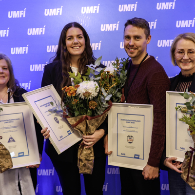 Á myndinni hér að ofan má sjá þau Bjarna, Gunnhildi, Jóhönnu Sigrúnu og Jónu þegar þau tóku við Hvatningarverðlaunum á sambandsþingi UMFÍ í fyrra.