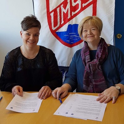 Ingibjörg Klara Helgadóttir, nýkjörinn formaður Ungmennasambands Skagafjarðar (UMSS) og Ásta Pálmadóttir, sveitarstjóri Sveitarfélagsins Skagafjarðar, skrifuðu í morgun undir samning á milli félagsins og sveitarfélagsins.