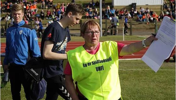 Í viðtalinu á umfi.is var rifjað upp að hún hefur verið sjálfboðaliði undir merkjum Ungmennafélagsins Íslendings og Ungmennasambands Borgarfjarðar (UMSB) síðan árið 1980 eða í samfleytt 37 ár. Tekið var eftir því á Unglingalandsmótinu í Borgarnesi hversu ötul hún var á frjálsíþróttavellinum og stýrði þátttakendum af krafti, þá sem endranær og gekk hún rúma 20 kílómetra á dag alla mótsdagana.