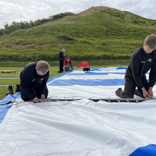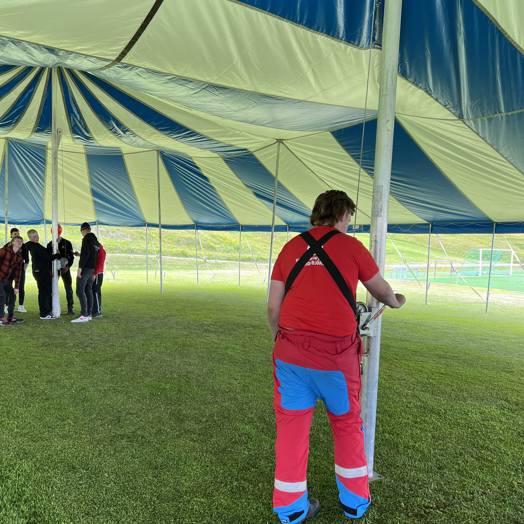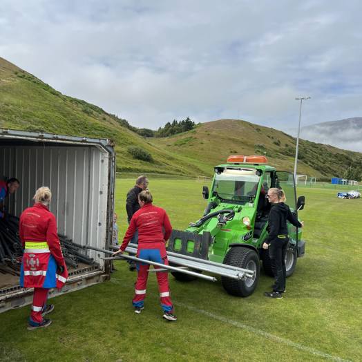 Hér að neðan má sjá verkefnið frá því tjöldin voru flutt úr gámi og reist á mótssvæðinu.