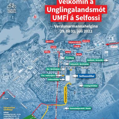 Í mótsblaðinu er líka að finna ítarlegar upplýsingar um mótsstaði, alla afþreyinguna og margt fleira sem í boði er á Selfossi á meðan Unglingalandsmóti UMFÍ stendur.
