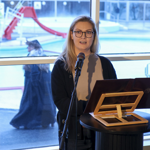 Þau Björn og Auður héldu sömuleiðis tölu við tilefnið. Björn hampaði viðurkenningunni og sagði hana ramma inn mikilvægi sundmenningar.