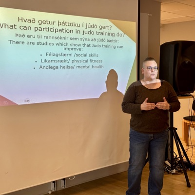 Annika Líf Maríudóttir Noack, júdóþjálfari hjá Júdódeild Tindastóls, hélt erindi um þjálfun hjá deildinni og verkefnið Judo For All. Annika fór yfir það hvernig er að þjálfa einhverf börn og kosti júdós, þar á meðal að þar er mikið af reglum og ákveðinn rammi sem iðkendur þurfa að fara eftir.