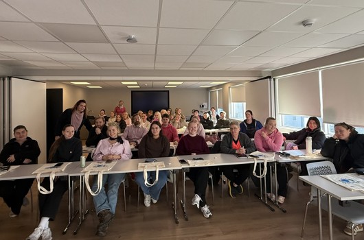 Tæplega 40 nemendur á fyrsta ári í tómstunda- og félagsmálafræði við Háskóla Íslands, ásamt kennara sínum, heimsóttu íþróttamiðstöð UMFÍ í gær. Markmið heimsóknarinnar var að kynna nemendum fjölbreytta starfsemi UMFÍ.