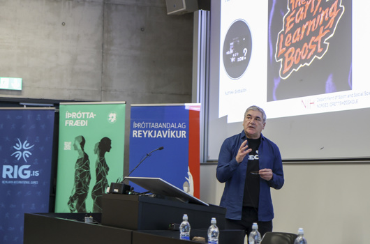 „Íþróttir eru fyrir börn, en ekki öfugt,“ segir Mark Joseph O'Sullivan, frá Norska íþróttaháskólanum (NIH). Hann ræddi á RIG-ráðstefnunni í dag um gerviatvinnumennsku sem er farin að ryðja sér æ meira til rúms í norrænum íþróttum.
