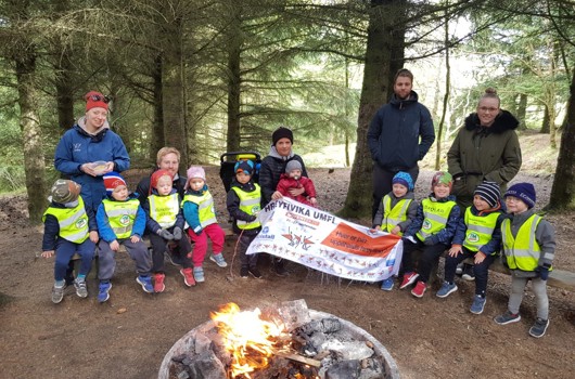 „Við förum alltaf í göngutúr á hverjum degi með börnin. Við förum í leiki, poppum yfir eldi og skoðum hestana með foreldrunum,“ segir Bergrún Stefánsdóttir, íþróttafræðingur í Heilsuleikskólanum Kór í Kópavogi. Nóg er um að vera í leikskólanum í Hreyfiviku UMFÍ.