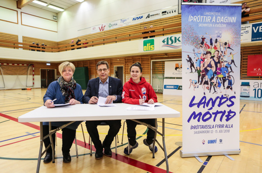 Ásta Björg Pálmadóttir, sveitarstjóri í Skagafirði, Haukur Valtýsson, formaður Ungmennafélags Íslands (UMFÍ), og Arnrún Halla Arnórsdóttir, formaður Ungmennasambands Skagafjarðar (UMSS) skrifuðu síðdegis á fimmtudag undir samning um Landsmótið, sem haldið verður á Sauðárkróki í sumar.