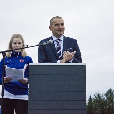 Guðni var gestur mótsins ásamt Kristjáni Þór Júlíussyni, mennta- og menningarmálaráðherra, Birni Ingimarssyni, bæjarstjóra Fljótsdalshéraðs, og frjálsíþróttakappanum Vilhjálmi Einarssyni.