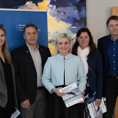 Haukur Valtýsson, formaður UMFÍ, og Auður Inga Þorsteinsdóttir, framkvæmdastjóri UMFÍ, voru viðstödd kynninguna á nýju íþróttastefnuna ásamt Soffíu Ámundadóttur, formanni íþróttanefndar ríkisins, Óskari Þór Ármannssyni, sérfræðingi í ráðuneytinu, þeim Lárusi Blöndal, forseta ÍSÍ, Líney Rut Halldórsdóttur, framkvæmdastjóra ÍSÍ og fólki í íþróttanefndinni ásamt öðrum sem komu að gerð íþróttastefnunnar.