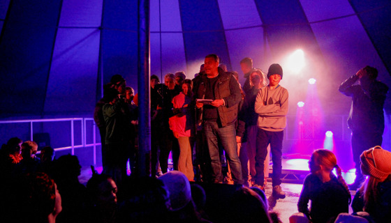Jóhann Steinar Ingimundarson, formaður UMFÍ kallaði þátttakendur UDN upp á svið að loknum tónleikum á tjaldsvæði mótsins í Borgarnesi og afhenti þeim bikarinn til varðveislu í eitt ár.