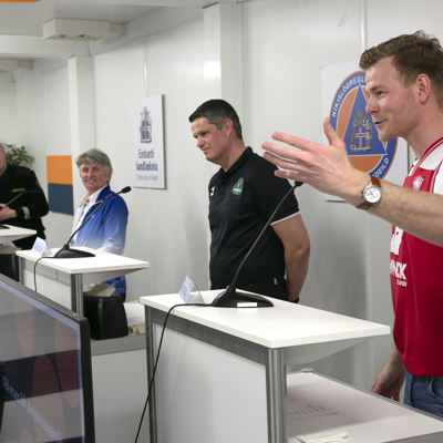 Eysteinn, Líney og Pálmar ræða íþróttastarfið