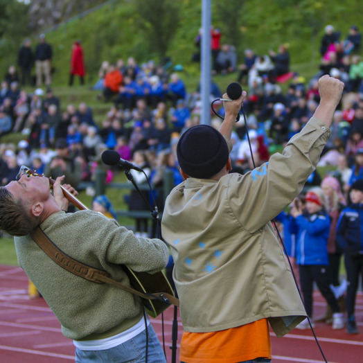 Bræðurnir Jón Jónsson og Friðrik Dór áttu einstaklega gott mót. Að ávörpum loknum komu þeir á íþróttavöllinn. Áður en þeir hófu raust sína spretti Jón úr spori og hljóp einn hring á ágætis hraða í kringum völlinn. Eftir það fluttu þeir nokkur lög og fengu alla til að dansa og syngja með.
