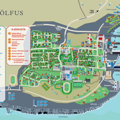 Við höfum látið gera kort af Þorlákshöfn. Þar má sjá flest það sem þátttakendur mótsins þurfa á að halda um verslunarmannahelgina. Á öðru korti sem sjá má fyrir neðan kortið af bænum er skipting tjaldsvæðisins eftir sambandsaðilum.