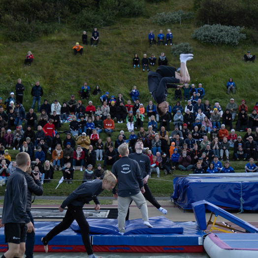 Unglingalandsmót UMFÍ er vel sótt á Sauðárkróki og stendur það yfir alla verslunarmannahelgina. Við mótssetninguna sýndi landsliðshópur fimleikafólks listir sínar auk þess sem fótboltasnillingurinn Andrew Henderson, sló í gegn þegar hann sýndi fótafimi sína í Freestyle Football. Andrew er með nokkrar vinnubúðir á Unglingalandsmótinu og geta mótsgestir lært það sem og hann hefur kennt kempum á borð við Neymar, Ronaldo og mörgum fleirum stórstjörnum.
