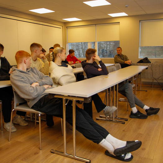 Nemendur á íþróttafræði- og lýðheilsubraut við Fjölbrautaskóla Suðurnesja (FS) kíktu í heimsókn í Íþróttamiðstöðina í Laugardal með Andrési Þórarnir Eyjólfssyni, kennara sínum. Í Íþróttamiðstöðinni hófu þau ferðina á að hitta Þórarin Alvar Þórarinsson, sérfræðing um fræðslu- og almenningsíþróttir hjá ÍSÍ, og fengu hjá honum fræðslu um ÍSÍ og helstu verkefnin, svo sem Sýnum karakter og 5C‘s sem er samstarfsverkefni með UMFÍ og fleirum.