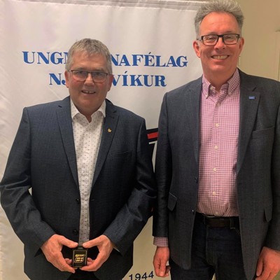 Ólafur Þór Eyjólfsson var endurkjörinn formaður Ungmennafélags Njarðvíkur (UMFN) á aðalfundi þess sem haldinn var í Njarðvík í gærkvöldi. Ólafur var sæmdur starfsmerki UMFÍ í tilefni dagsins. Guðmundur Sigurbergsson, sem sæti á í stjórn UMFÍ, afhenti Ólafi starfsmerkið. Hann og Lárus B. Lárusson voru fulltrúar UMFÍ á fundinum.