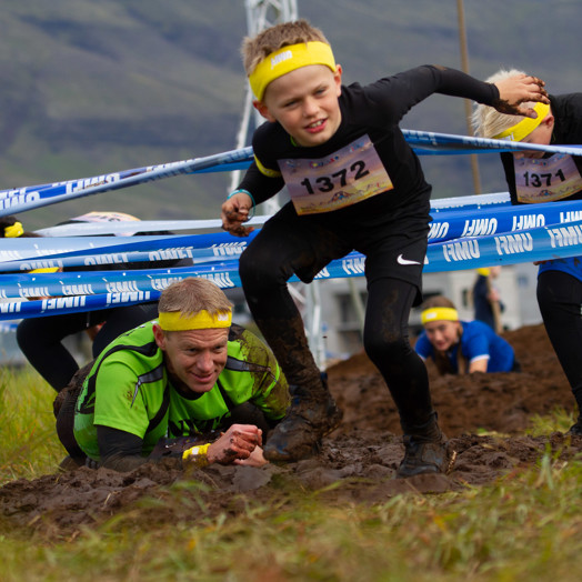 Hlaupaleiðin er drulluskemmtileg og krefjandi. Hringurinn er 3,5 km langur með fjölda hindrana sem þarf að yfirstíga. Fjölskyldur hlaupa saman og hjálpast að við að komast í gegnum hindranirnar eða leysa saman þrautirnar. Allir 8 ára og eldri ættu að komast í gegnum brautina með aðstoð foreldra og/eða forráðarmanna.