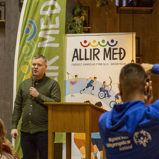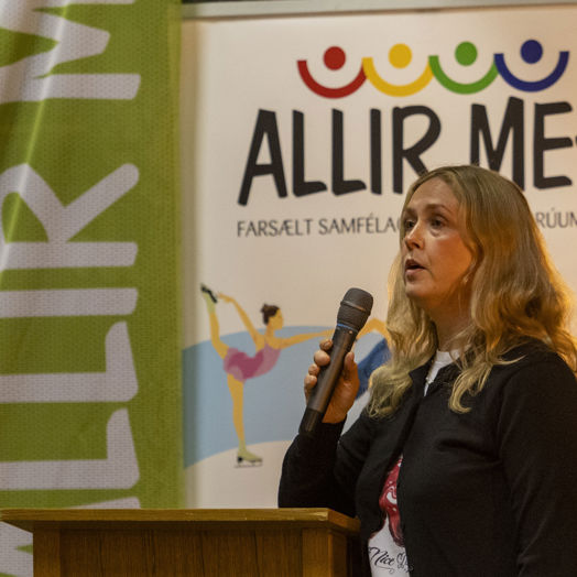 „Framtíðarsýn okkar er sú að það þyki eðlilegt að íþróttafélög bjóði upp á æfingar fyrir fötluð börn eins og ófötluð. Þangað erum við að stefna,“ segir Valdimar Gunnarsson, verkefnastjóri verkefnisins Allir með. Hann var á meðal fjölmargra frummælenda á fjölmennu málþingi um verkefnið. Málþingið hét: Allir með: Ferðin hingað og ferðalagið framundan.