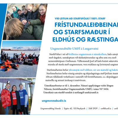 Umsóknarfrestur er til 1. desember. Nánari upplýsingar veitir Jörgen Nilsson, forstöðumaður Ungmennabúða UMFÍ, í síma 787 5050.