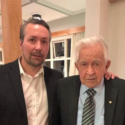 Hér á myndinni að ofan má sjá hann með einu barna sinna, Þórólfi Sveinssyni.