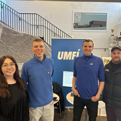 „Þetta gekk mjög vel og var stórskemmtilegt,“ segir Ernir Daði Sigurðsson, nemandi við Menntaskóla Borgarfjarðar. Hann á líka sæti í Ungmennaráði UMFÍ og kynnti starf UMFÍ, ungmennaráðið og Unglingalandsmót UMFÍ ásamt öðru í starfi UMFÍ á opnum degi í Lífsnámsviku menntaskólans. Með í för var faðir hans, Sigurður Guðmundsson, forstöðumaður Skólabúða UMFÍ á Reykjum í Hrútafirði.