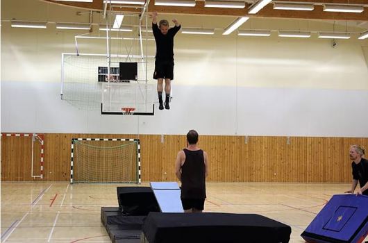 Danskir snillingar æfa sig í loftfimleikum