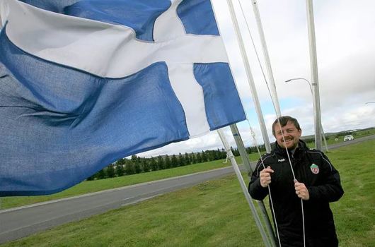 Davíð Þór Sigurðsson, formaður Hattar á Egilsstöðum, dró fána UMFÍ að húni í gær á einni af fánaborgunum sem búið er að koma fyrir á Egilsstöðum. Undirbúningur er í fullum gangi fyrir Unglingalandsmót UMFÍ á Egilsstöðum