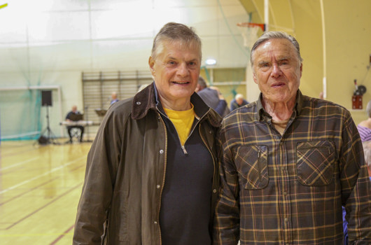 Þeir Valtýr Sigurðsson og Jón H. B. Snorrason voru á meðal gesta á setningu Landsmóts UMFÍ 50+ á Siglufirði í gærkvöldi. Valtýr er fyrrverandi forstjóri Fangelsismálastofnunar, og Jón var saksóknari hjá lögreglunni á höfuðborgarsvæðinu um svipað leyti.