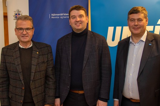 Ásmundur Einar Daðason, mennta- og barnamálaráðherra, Lárus L. Blöndal forseti ÍSÍ og Jóhann Steinar Ingimundarson formaður UMFÍ undirrituðu í dag samning um átta nýjar starfsstöðvar til eflingar íþróttastarfs á landsvísu.
